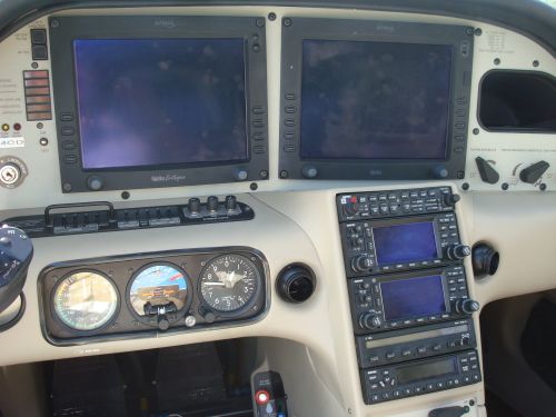 | Avionics: | Avidyne FlightMax Entegra glass cockpit Garmin GMA 340 audiopanel Garmin GNS 430W GPS/nav/Comm Garmin GNS 420W GPS/nav/Comm S-tec System 55x Autopilot with altitude selector alert L3 Communications WX 500 Stormscope sensor L3 avionics SkyWatch traffic sensor KGP 560 terrain warning system Aerodyne flight director Aerodyne air max engine instrumentation Aerodyne C-max approach chart XM Satellite weather system |