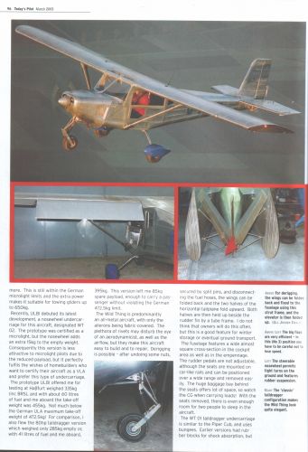 | Airframe: | Poliertes Aluminium. Sehr attraktives Aussehen. Vorführmaschine (Messemodell) auf letzten Ausführungsstand. Das UL mit dem größten Platzangebot in der Kabine. Viel Bein- und Bewegungsfreiheit auch für große Piloten. Klappbare Flächen Große Seitenfenster zum Fotografieren. Zugelassen zum Flug mit offenen Fenstern. |