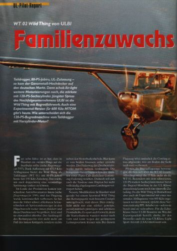 | Remarks: | Verkaufe Wild Thing WT 02 Preis: 62.000 € VB Hersteller ULBI Typ Wild Thing WT-02 Bugrad Kennzeichen D-MLFZ (MeinLuftFahrZeug) Baujahr 2004 Seriennummer 085 Gesamtflugzeit 851 h Motorlaufzeit 236 h Standort EDOH Langhennersdorf Kasko + CSL April 2018 neu https://en.wikipedia.org/wiki/ULBI_Wild_Thing Die D-MLFZ war mehrfach Messemodell und in nationalen und internationalen Fachzeitschriften abgebildet. Verkauf aus Gesundheitlichen Gründen. Einweisung durch erfahrenen Fluglehrer Tel. 0176/43857059 |